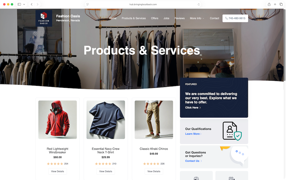 As a business owner of our local community, you will have your own dedicated marketing landing page and online catalog which can be converted to a basic online eCommerce store.